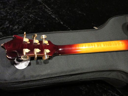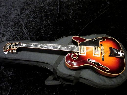 日本が誇る名ルシアー辻四郎の斬新なホローボディギター入荷しました。テレキャスターを思わせるサイズ感、ボディ形状で取り回し抜群のジャズギターです。渦巻き状の6弦側カッタウェイ、ボディ/ネックにはトラ杢のメイプルのウッドバインディング、上質なエボニーの指板には白蝶貝とアバロンのムーンインレイ他非常に凝った作りとなっております。ピックアップはTVジョーンズ製フィルタートロン、アッセンブリーはピックガードマウントです。出音はさすがの一言!是非一度試奏してみて下さい。唯一無二のカスタムギターです!ソフトケースが付属致します。