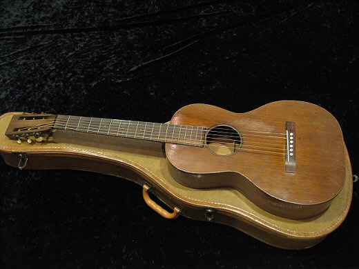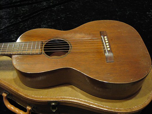 小さなサイズですが凄い音量です!1926年製マーチン2-17入荷しました。フレット、ナット含めオリジナルをキープ。ペグも問題なく使えます。特にネックのコンディションが素晴らしく、ストラス無く弾きやすいギターです。サイドにヘアラインクラックの修正がありますがトップ、バックの板割れもございません。ラグタイムブルースにぴったりなトーンです!!チップボードケース付き