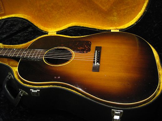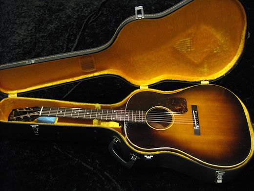 とてもコンディションの良い1946年製J-45が入荷しました。スクリプトロゴにウェザーチェックの入ったヘッド面が格好良いルックス、ボディのサンバーストカラーもフェイドは僅かでとても良い雰囲気です。リフレット済みのネックはストレートでロッド余裕あり、弦高は2.6㎜/1.8㎜と弾き易いセッティングになっております。締まった低音に煌びやかな高音域を待つ素晴らしいサウンド!!ボディバックに1か所のクラック修理、ネックオーバーラッカーが行われておりますが、年式を考慮すると非常に良いコンディションのヴィンテージJ-45です。ハードケース付き