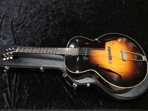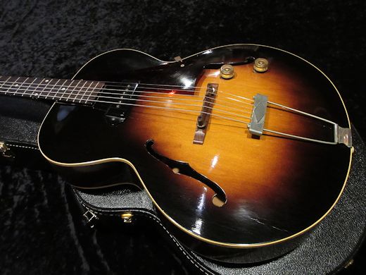 1953年製ES-125入荷しました。とてもきれいなコンディションの深胴のフルアコです。フロントポジションにP-90を一発搭載、スイートなトーンが魅力。オリジナルアッセンブリー、オリジナルフレット&ナットオリジナルハカランダブリッジ。ペグが近年のクルーソンへ交換。弾き易く、プレイングコンディションも良好な1本です。ケースは17インチ用のソフトケースが付属致します。