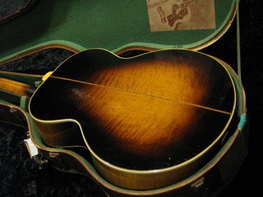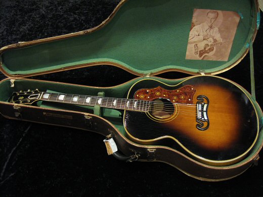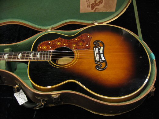 サウンド、コンディション抜群の1953年製SJ-200入荷しました。人気の高いホワイトラベル期のSJ-200、サンバーストの吹き方もとても渋い感じです。腰の強い低音と鈴なり感のある高音が混ざり合って極上のコードトーンを聞かせてくれます。ネックはストレートで適正弦高。リフレット、ナット、サドル交換。ブラウンケース付き