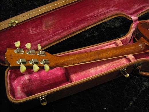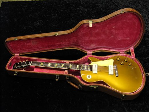 フルオリジナル、美品!!1954年製レスポールスタンダードゴールドトップの入荷です。トラピーズテールピースからバーブリッジへ仕様変更が行われ、弾き易さに加え腰のある低音やサスティーンなどサウンド面でも非常に人気の高い年式です。今回入荷分はほとんど緑錆の出ていない大変良いコンディションで塗装面の艶も艶めかしく残っています。近年相場上昇の一途をたどる’50sレスポールですのでお探しの方は是非お早目にご検討下さい。オリジナルブラウンケース付き
