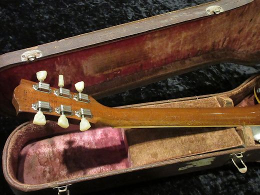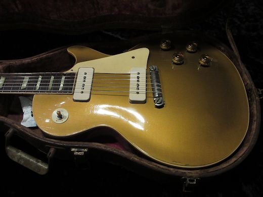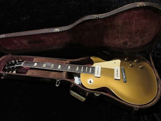 1954年製レスポールスタンダード ゴールドトップ入荷しました。ラップアラウンドブリッジのレスポールスタンダードです。ウェザーチェックが多めに出ていますが全体としてはクリーンなコンディションでフルオリジナルパーツ。倍音出まくりのスイートなP-90サウンドが絶品の1本!6弦側ペグ間に縦にクラックリペアが入っております(強度は問題無し)のでスペシャルプライスとなっております。オリジナルブラウンケース付属