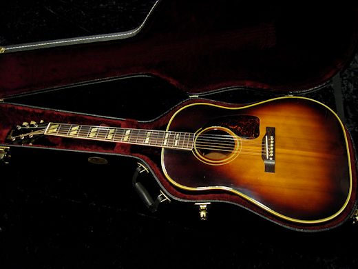 素晴らしいコンディション!1954年製サザンジャンボ入荷です。ノークラック、ネック状態抜群でサウンド、コンディション、ルックスの3拍子揃った文句なしの1本!弦高は2.9/2.2と適正でサドル高の下げ幅もございます。スキャロップドブレージングならではのラウドな鳴りが強烈、人気のスモールガード期の極上品です。ハードケース付 値下げしました!98万→88万