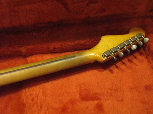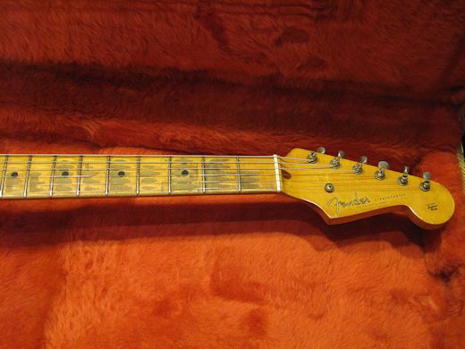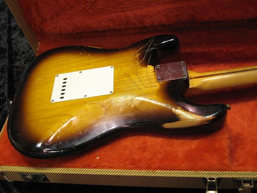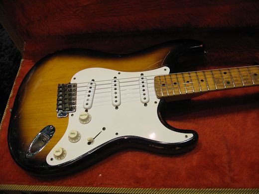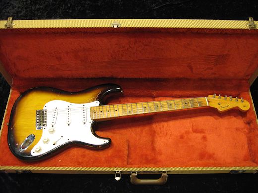 1ピースアッシュボディの1955年製ストラトキャスター入荷です。抜群に渋い経年感を醸し出しており、塗装の剥がれたネックの感触も手に馴染みます。サウンド的には倍音豊かで鳴り感が素晴らしいです。主要パーツはオリジナルですが多少の交換パーツがございます。近年ツイードケース付