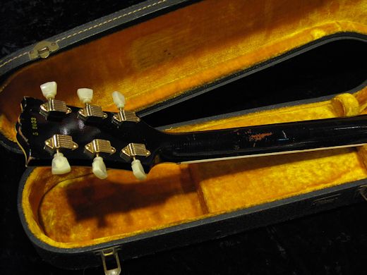 Good Condition & Nice Sound!1955年製レスポールカスタムです。1954年に発売されたP-90+P-480ピックアップ搭載の初期型レスポールカスタム。今回入荷分はオリジナルのフレットレスワンダーが残っている非常に貴重な個体です。ホンデュラスマホガニーと両ピックアップのマッチングが素晴らしく、リアはエッジーでパワフル、フロントはメローでスムースなトーンをご堪能頂けます。ネック裏に一部弾き込みによる塗装剥げ、所々に小傷はありますが、トータルでは良いコンディションが保たれております。ウエイトは4.09㎏と軽めです。オリジナル度が高くコレクタブルでサウンドも納得のヴィンテージレスポールカスタム、是非チェックして下さい!オリジナルハードケース付き