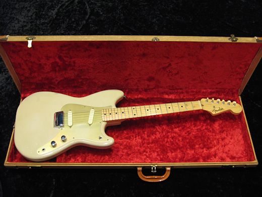 First Year ! Near MINT !1956年製デュオソニック入荷しました。Vシェイプネック、ネックデイト11-56、ポットデイト’56×2。ナットのみ交換済み。オリジナルブリッジカバー&ケース付
