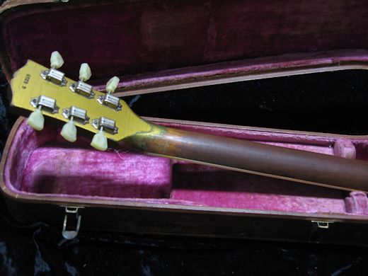 1956年製レスポールスタンダード入荷しました。ウェザーチェックは渋い入り方をしていて年式相応の貫録十分、トップコートの焼けは少なくほぼオリジナルに近い色味が残っております。フレット(1-15フレットまで)、ナット交換以外は全てオリジナルパーツをキープ。非常にパワフル且つクリアなサウンドがとても魅力です!ネック裏の塗装は意図的かもしれませんが剥がれていて(塗装のみでリシェイプ無し)大変手触りの良いナイスフィールです。コレクターさん放出の素晴らしい1本です!!オリジナルブラウンケース付