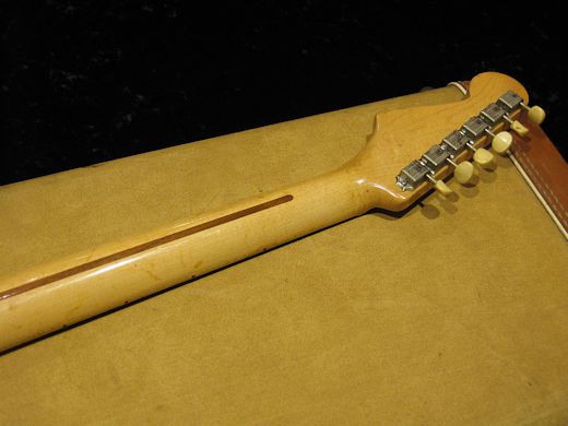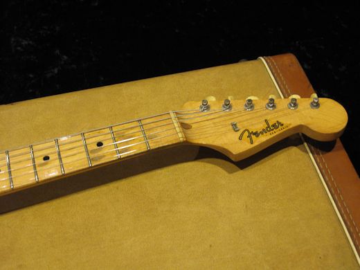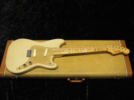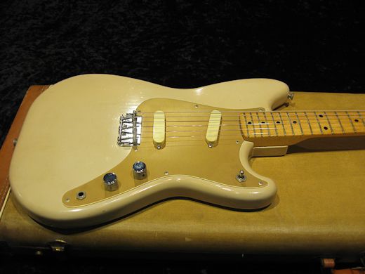 書籍でも紹介された非常にコンディションの良い1957年製デュオソニック入荷しました。1956年にスチューデントモデルとして発売されたデュオソニック、ミュージックマスター、本機はがっしり太目のVシェイプネックの初期型です。ノブ、ペグの交換は見受けられますが、アセンブリーはフルオリジナルをキープしております。出力もしっかりあり、キッズ向けモデルとは思えない味わい深いサウンドのギターです。オリジナルハードケース付き