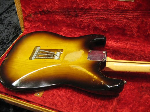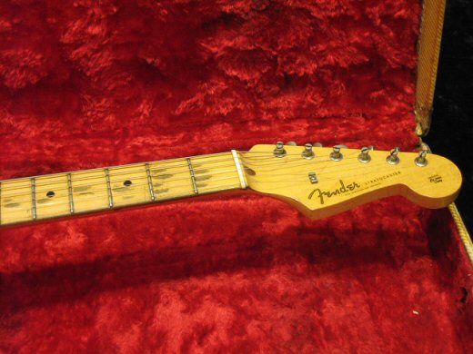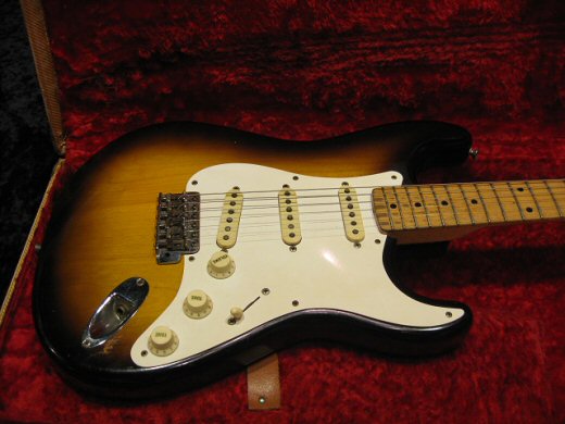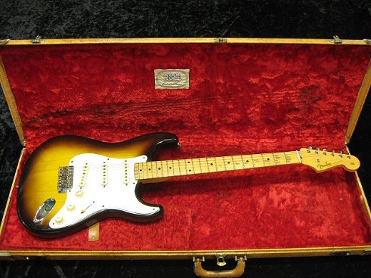 ’57年製ストラトキャスターの入荷です。素晴らしいコンディションをキープしています!倍音が出マクリで生音の鳴りの良さを実感できる涙物のサウンド!!フレット、ナットのみ交換されております。オリジナルハードケース付属。