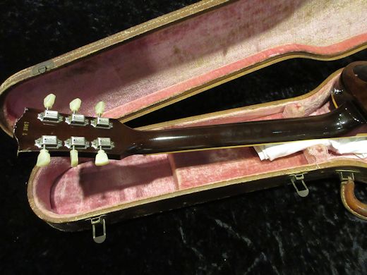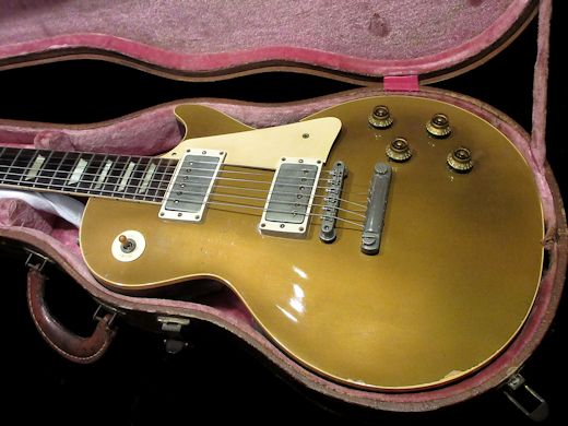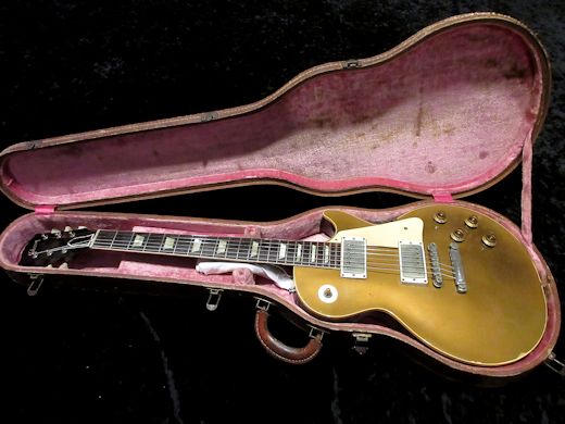 1957年製レスポールスタンダードの入荷です。シリアルナンバーから、ハムバッキングへ仕様変更され間もない時期のレスポールスタンダードです。最初期のみのノーメッキカバーにデカール無しのオリジナルPAF、倍音が非常に豊かでパワフルなサウンドは昇天ものです。渋いダークバックに美しいゴールドカラーの残ったトップ、パーツは一部ネジを以外はオリジナルです。ポットデイト1956年49週目。オリジナルフレットもまだ使えます。他詳細はお問い合わせ下さい。ウエイト3.81㎏、軽量です。オリジナルブラウンケース付き