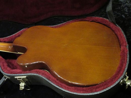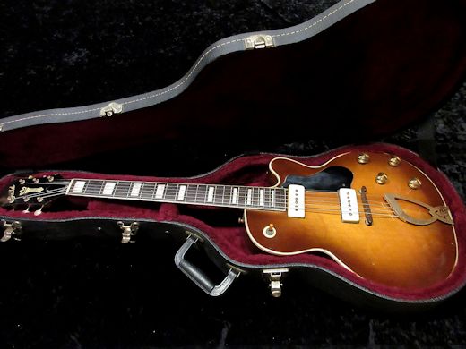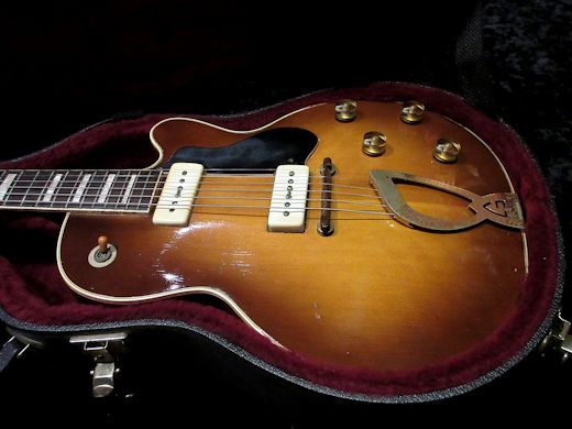RARE!1957年製ギルド M-75アリストクラット入荷しました。ホロー構造のマホガニーボディにスプルーストップ、マホガニーネック、GIBSON P-90に似た構造のソープバーピックアップ、ハカランダ指板という仕様でボディサイズはほぼレスポールと同じです。後の仕様変更後のモデルはブライアンセッツアーやキースリチャーズ等の使用で知られます。このファーストバージョンは当時John Lee Hookerが愛用しており、ホローボディとP-90より僅かに出力を抑えられたピックアップからは「枯れた」と表現するのがピッタリな、とにかく乾いた素晴らしいサウンドです!!バインディングの補修など適切なメンテが行われ、ネック状態良好も良好なレア機、次はなかなか無いモデルです。ハードケースが付属致します。