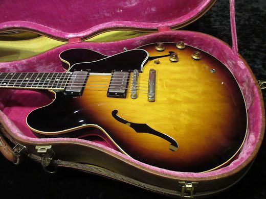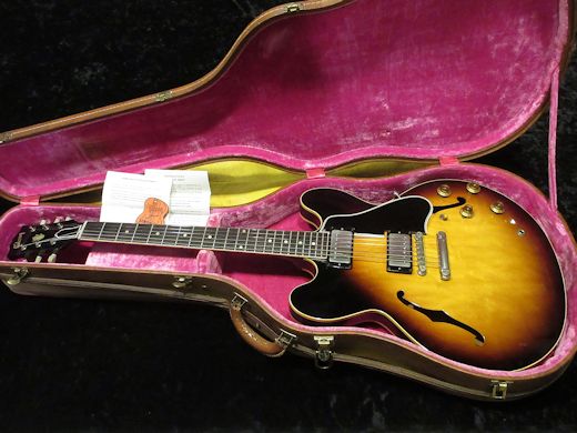 Unfaded!ミュージアムクラスの極上機!1958年製ES-335TD入荷しました。当時の美しいサンバーストカラーがほとんど退色せずに残っており、塗装の艶や傷の少なさなどミントと言っても過言ではないコンディションの1958年製ES-335TDです。繊細かつパワフル、ピッキングニュアンスがそのまま音として現れる得も言われぬトーンを持つ、眺めて良し弾いて良しのGREAT VINTAGE ES-335です。Thin top、ネックアングルの付いている58年後期から59年初期に作られたグッドスペックの個体です。貴重なハードケースカバー、程度の良いオリジナルブラウンケースが付属致します。