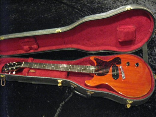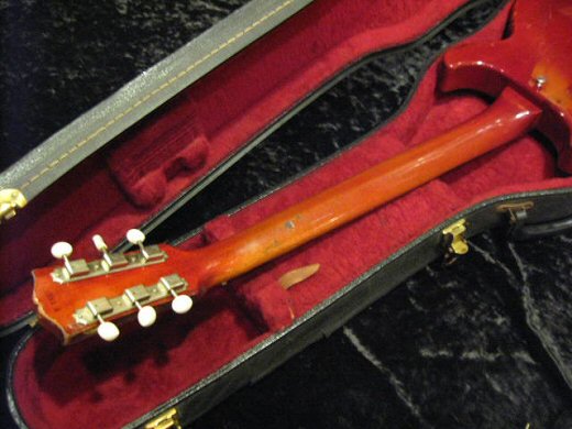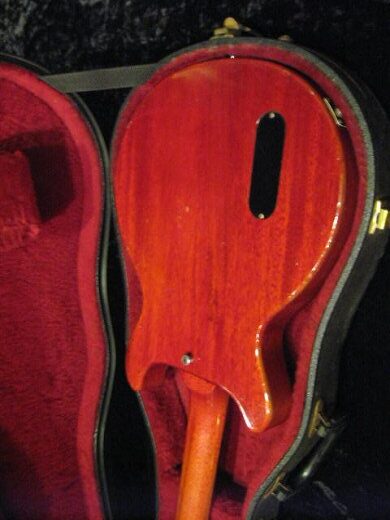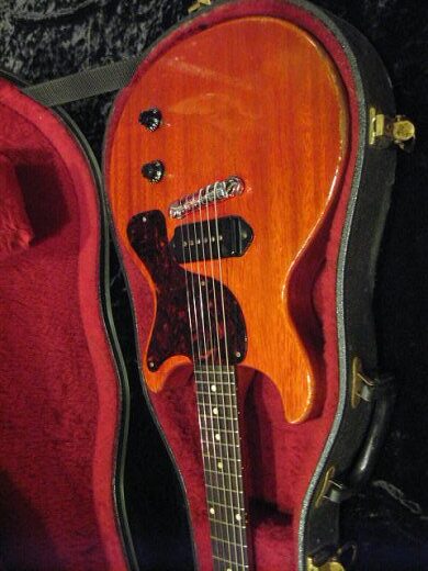 ’58年製レスポールジュニアの入荷です。十分に赤みが残ってて格好よいです。ペグ、ブリッジ(’60Sギブソン製)が交換されています。