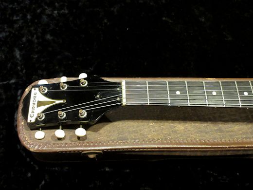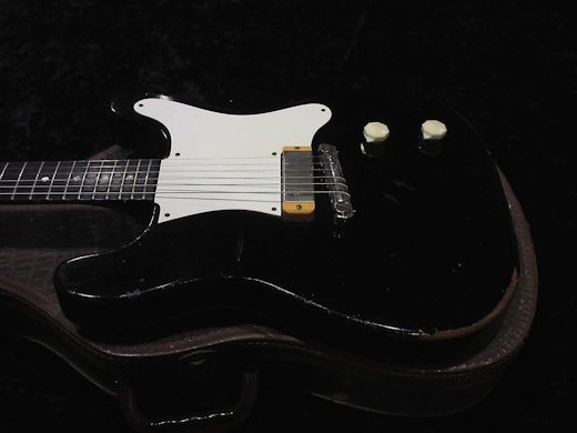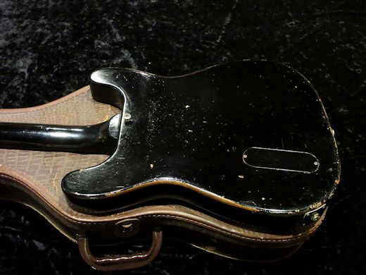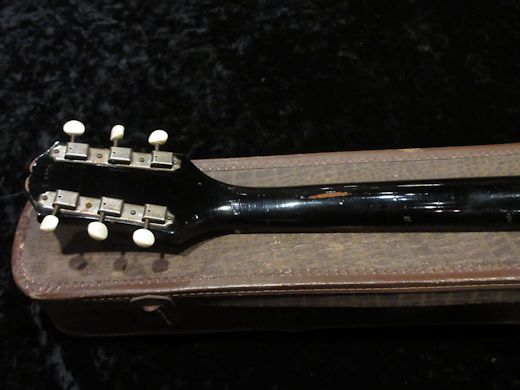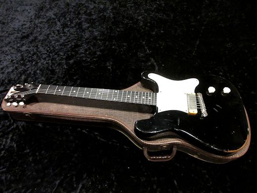 Rare ! ダブルカッタウェイレスポールジュニアのエピフォンバージョン 1959年製 Epiphone Coronetの入荷です。Coronetと言えば後年のP-90搭載モデルのイメージが強いですが、今回入荷の1本は58年から59年にかけて、僅か2年程度しか生産されていないオリジナルシェイプのCoronet!厚みのあるホンデュラスマホガニーボディーにハカランダ指板ネック、ファットヘッドにビキニロゴとVintage Epiphoneならではの趣きたっぷりのルックスに「New York Pickup」と呼ばれるEpiphoneオリジナルのシングルコイルピックアップを搭載。歯切れがよく色気たっぷりで木部の鳴りを心地よくクリアにアウトプットしてくれます。オリジナルブラックのカラーリングも実にクールです!生産本数が極端に少なく、本国USのプライスも1万ドル前後と評価の高いこのモデル。パーツ類もフルオリジナルで、オリジナルのアリゲーターチップボードケースが付属します。