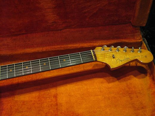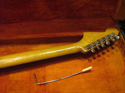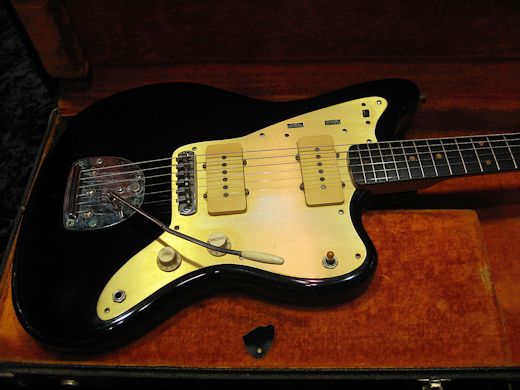 1959年製ジャズマスター入荷しました。こちらもボディリフィニッシュになりますがアノダイズドピックガードにブラックボディの格好良さは堪りません!パーツ交換は無く、POT DATE 137 850、NECK DATE 1/59、BODY DATE 10/58となっております。オリジナル度の高いアノダイズドPGのジャズマスター、リフでなければ100万オーバーの相場ですのでなかなかの出物です!やや後年のブラックトーレックスケース付