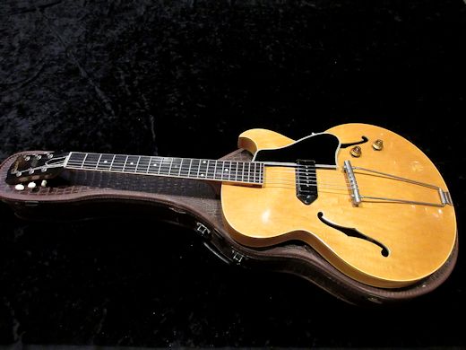 NEAR MINT!ORIGINAL NATURAL BLOND!1959年製ES-225TNの入荷です。ボディトップのブリッジ裏にソリッドブロックが取り付けられた1955年発売のシンボディフルアコ。本機はP-90の1ピックアップ仕様でマウントポジションの妙によりウッディながら歯切れの良い素晴らしいサウンドです。シンボディながら生鳴りの良さも特筆もの!ニアミントコンディションでフルオリジナルの貴重なブロンドカラーES-225TN。アリゲーターケースが付属します。