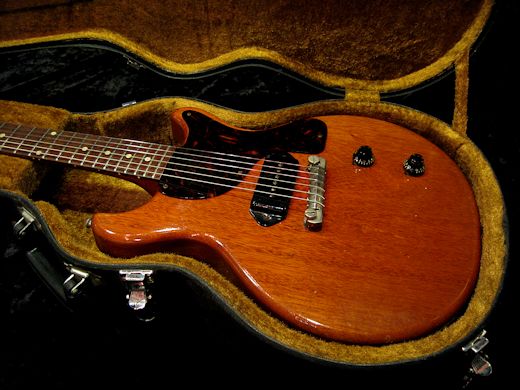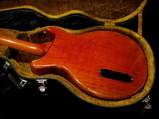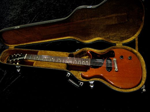 パワフルサウンド!!ダブルカッタウェイ期の1959年製レスポールジュニアが入荷しました。シンプルさ故にウッドマテリアルの素晴らしさが際立つ名機レスポールジュニア。今回入荷分はウエイト僅か2.78kgと非常に軽量で、生鳴りだけでもこのギターのポテンシャルが感じ取れるナイスな1本。音圧があり、芯が太く、クリアでミドルレンジが強力な異次元のサウンドです。ネックコンディションは良好でロッド余裕あり、フレット残も十分ございます。ペグ交換歴あり(現在はオリジナル)、ストラップピン位置移動、ブリッジアンカー位置移動有り。ポット、ノブ各1個、ブリッジが交換。リフレット含め、プレイングコンデョションを最優先に扱われてきた事が伺える、まだまだ現役バリバリのヴィンテージレスポールです!!ハードケース付き
