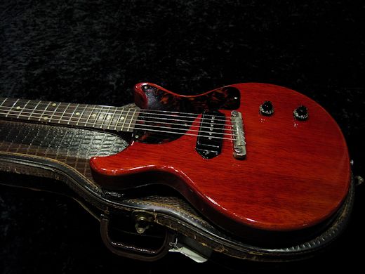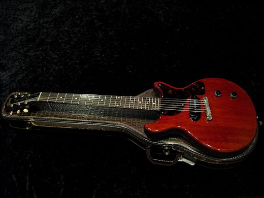 Full Original & Excellent Condition!1959年製レスポールジュニアが入荷しました。退色の少ない真っ赤なダブルカットジュニア、ハイからローエンドまでガッツあふれる強力なサウンドの個体です。ウエイトは2.72kgと超軽量!フルオリで赤の綺麗な極上のレスポールジュニアお見逃しなく!アリゲーターケース付き