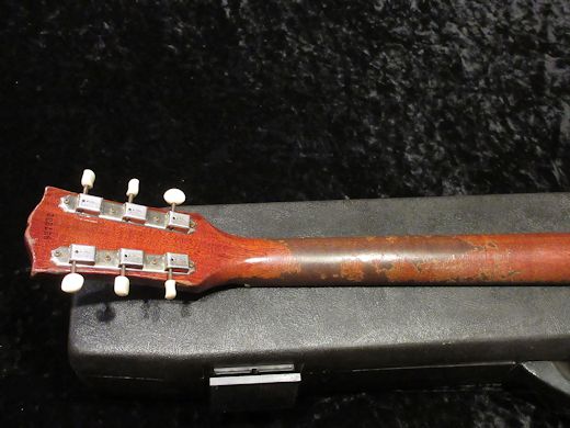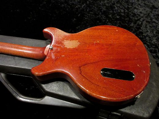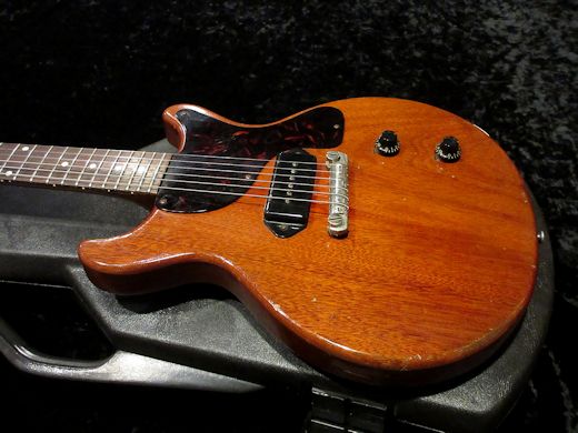 1959年製レスポールジュニアが入荷しました。絶妙な退色具合がムード満点の59年製レスポールジュニアです。シリアルは59年最後期のナンバリングでネックはかなり太い個体です。P-90とホンデュラスマホガニーの組み合わせからは乾いた芯の太いヴィンテージサウンドがご堪能頂けます。リフレット、ナット交換以外はオリジナルパーツになります。80Sロケットケース付き