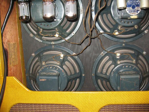 ’60年製4×10ベースマンの入荷です。グリル&ツイード張替え。太く甘いクリアサウンドからボリュームを上げると強力なオーバードライブサウンドへ変身!’59年製オリジナルジャンセンSP×3、残りの1発は’62年製がマウントされています。経年により劣化したコンデンサー、ポットは数個交換されています。