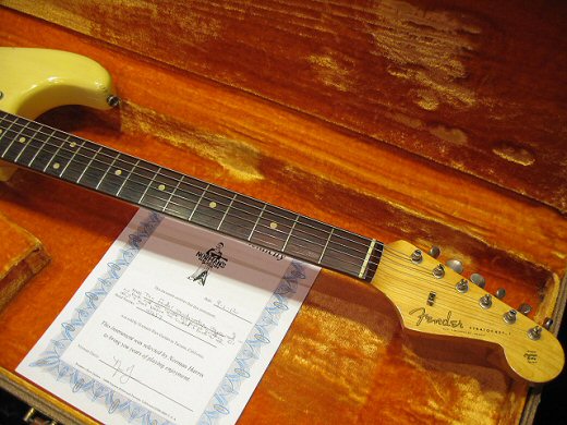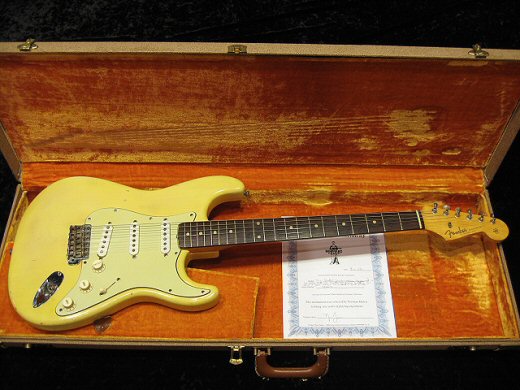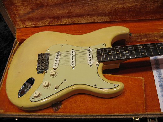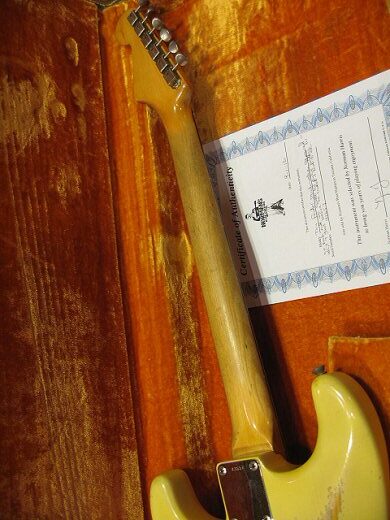 超Coolなルックスの1960年製オリジナルブロンドフィニッシュのストラトキャスターが入荷しました。元リッチーサンボラ所有機でボンジョヴィのIt’s my lifeのPVの中でちらっと出てきます。プレイフィーリングは最高です!!ボリュームポット、スイッチのみパーツチェンジがございます。ブラウントーレックスケース付き