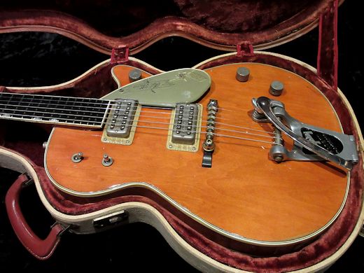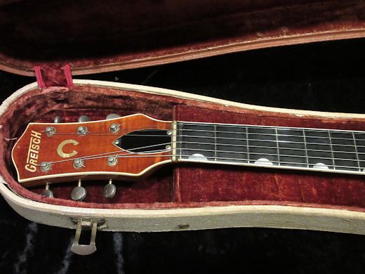RARE MODEL ! 1960年製グレッチ#6121入荷しました。#6120のSOLID BODYバージョンで取り回し良く、Coolなルックスが魅力の1本。オリジナルのFiltertronピックアップとチェンバーボディからはエアー感があり、音の分離も良い美しいクリアーなトーンが味わえます。ペグの付け戻しや多少のパーツ変更は見受けられるものの総じてコンディションの良いVintage Gretschです!オリジナルのホワイトケースが付属致します。