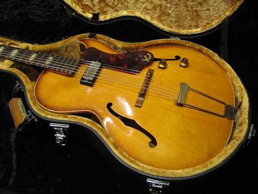 とろけるような極上サウンド!1961年製エピフォン「ウインザー」入荷しました。1959年から約3年間ほどしか生産されていない希少なモデル。同じくシンボディの「Sorrento」とよく似ておりますが、こちら方が僅かにボディ幅があり、ゴールドパーツ、オーバルポジションマークなど上位機種にあたります。本機は61年からのギブソン製ミニハムが搭載されたセカンドバージョンで、艶っぽい音色は素晴らしいの一言!ネックコンディション良好、リフレット済み。ペグ、ノブの交換がございます。ハードケース付き