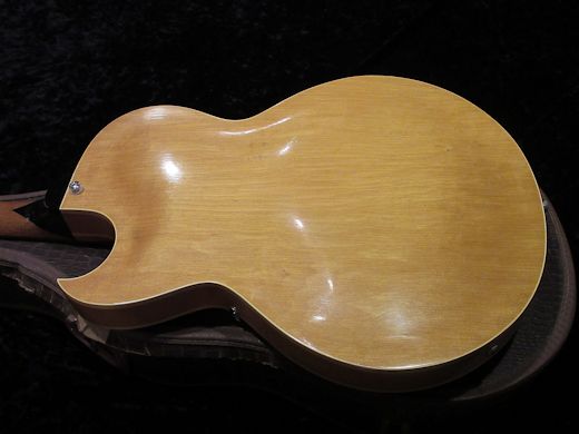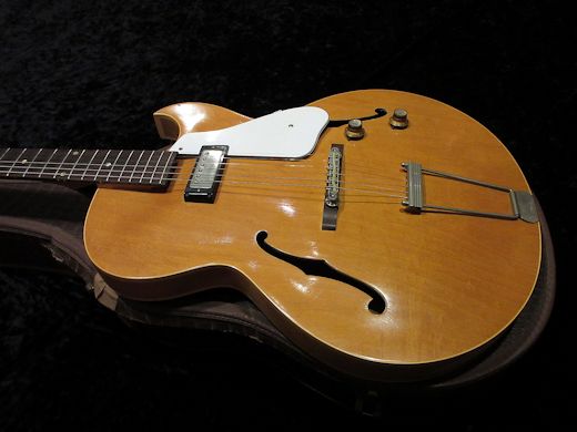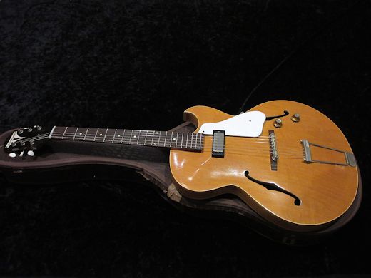 初期型エピフォン ソレント1961年製入荷しました。61年製までの特徴のビキニロゴ、ドットマーカー、オリジナルブロンドカラーと貴重なスペックのシンボディフルアコ、ソレントです。PAFステッカーは剥がれてしまっておりますが、エピフォン製ミニハムバッカーの素晴らしいサウンドがご堪能頂ける1本です!フレット、ナットは交換済みで演奏性は大変良好。ペグ、ピックガードは交換されております。ノンワイヤーオリジナルABR-1付きでコンディションの良いブロンドカラーのソレントです!!アリゲーターケースが付属致します。