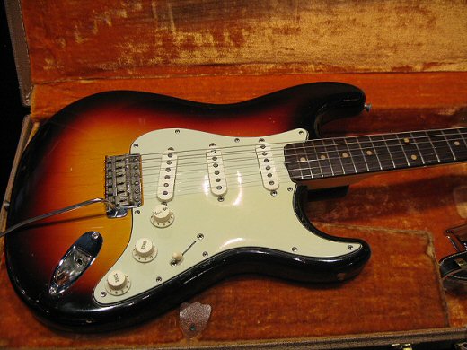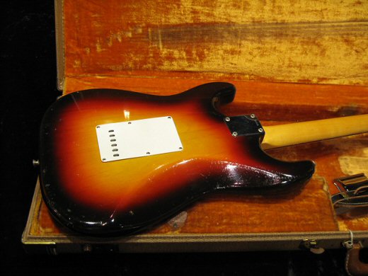 ’61年製スラブボードストラトキャスターの入荷です。赤味の残った美しい色合いのボディ、ネックの塗装も非常にきれいです。低音のよく効いたパンチのある太いサウンド!フルオリジナルでブリッジカバーも付属します。一生物のストラト如何でしょうか。オリジナルブラウンケース。