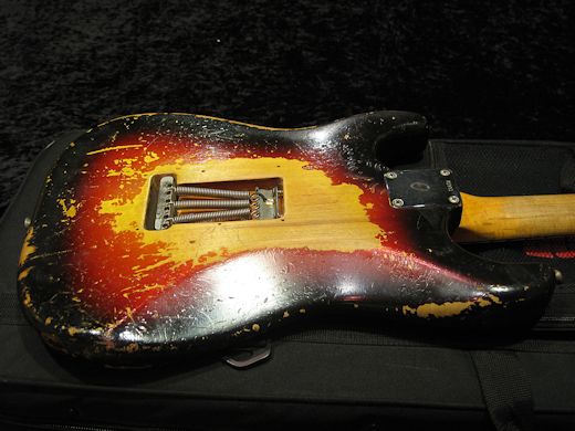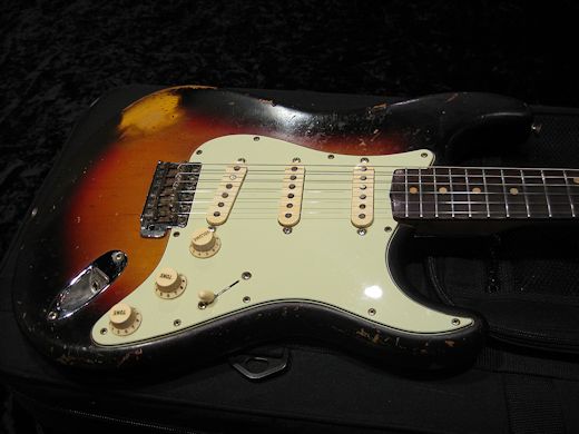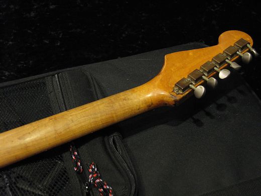 1961年製スラブのストラト入荷しました。主だったパーツはVO OPT交換のみとオリジナル度は高く、リアピックアップのみリワインドですがサウンドは最高の1本です。リフレット、ナット交換済みで演奏性もとても良好。ボディにスイッチを増設した形成がありますが、同じアルダー材できっちりと埋め戻しが行われております。その他詳細はお問い合わせ下さい。ガンガン弾けるオリジナルフィニッシュのスラブストラトです!!ノンオリハードケース付