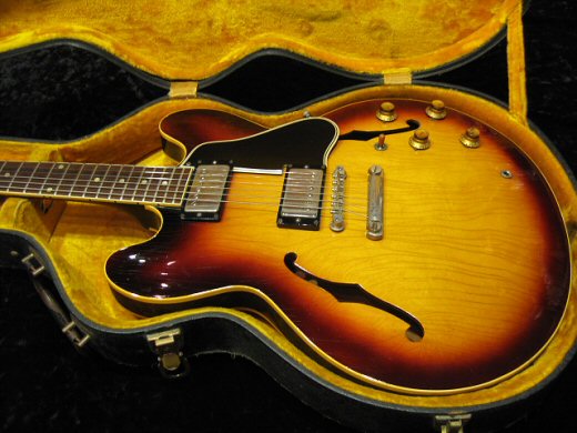 ブライトで倍音たっぷりのPAFサウンドが最高です!1961年製ES-335TDが入荷しました。まさにKiller Tone!!音が最高に良いドットの335をお探しの方が是非チェックして下さい。ウェザーチェックは年式相応に出ていますが楽器としてのコンディションは申し分なし。フレット、ナットの交換のみでパーツは全てオリジナル!!ネックは程よい厚みのグリップでとても弾きやすいです。オリジナルケース付属
