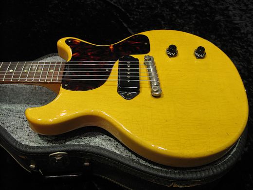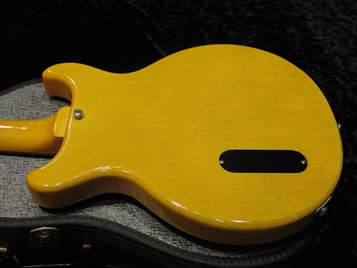 フルオリ!美品!1961年製レスポールTV入荷しました。色焼けの無い鮮やかなイエローをキープした綺麗な1本、ウェザーチェッキングは全体にヴィンテージらしく入っています。パワフルな低音のロックなサウンドは見た目通り。状態の良いTVをお探しの方は要チェック!!チップボードケース付です。