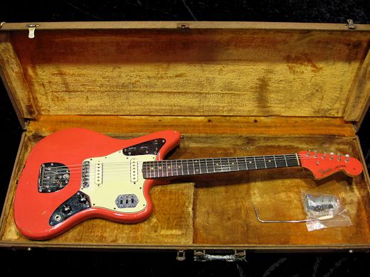 Super Rare!!1962年製フェスタレッドのジャガー入荷しました。フラットポールピックアップ、スラブ指板にフェスタレッドのマッチングヘッドというドリーミーなジャガー。半田を触られた形跡は無く、パーツ類も全てオリジナルです。レア度もさることながらジャガーの概念を変えるほどの太く粘りのあるサウンドがご堪能頂ける素晴らしい個体です。オリジナルブラウントーレックス付き