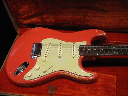 スラブボードのフェスタレッドストラトキャスター入荷しました。抜群に音の良いオリジナルフェスタレッドのストラトです。パーツの変更も無く、オリジナリティの高い貴重なカスタムカラーです。詳細はお問い合わせ下さい。ブラウントーレックスが付属致します。