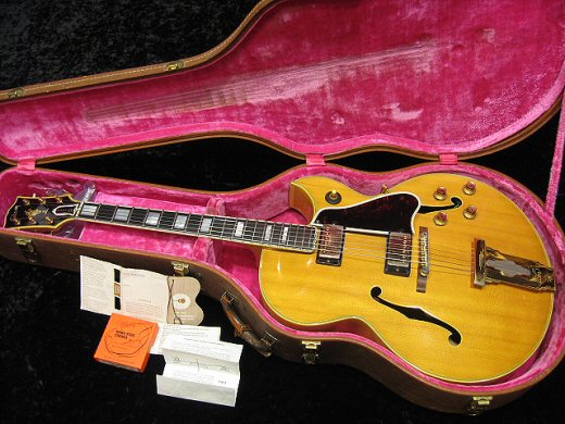 ミュージアムクラスの極上コンディション1962年製L-5CESNです。アメリカの有名コレクターからゲットしました。文句なしのニアミントコンディション、オールオリジナルパーツ、タグ付き、弦付き!!フローレンタインカッタウェイ、バックは2ピース単板。ピックアップはPAFです。ケースは専用のオリジナルブラウンケースになります。ネック状態もパーフェクトです。