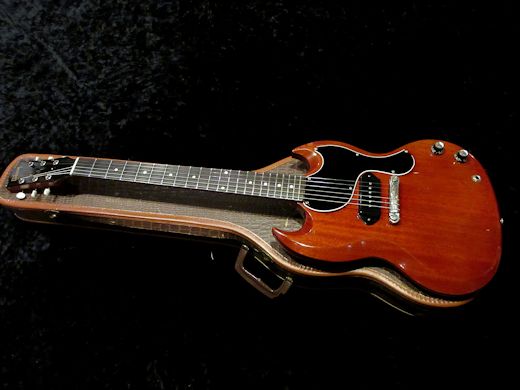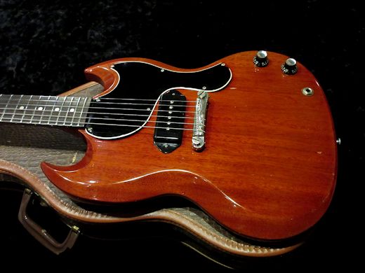Les Paul Logo!1962年製Les Paul/SG Junior入荷しました。肉厚のあるしっかりしたネックグリップにハカランダ指板、ヘッドにはシルクスクリーンの”Les Paul”ロゴ入りのグッドスペック!低音の効いた素晴らしいP-90サウンドも魅力の個体です。フレット残は十分あり、演奏性も抜群。POT DATE 1346204。音的にも超当りの初期SGジュニア!お見逃しなく!!!ウエイト2.62㎏。アリゲーターケースが付属致します。