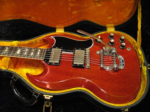 LP/SG 第2弾。Super rare !!Factory Bigsby搭載の1962年製Les Paul/SG STDです。ミックテイラーが使用したことで有名なこのスペックのSGは当時のオプションだったこともあり非常に希少です。2 PAF’s、All ORIGINAL、No repairの貴重なギターを是非この機会に如何でしょうか。オリジナルハードケース付