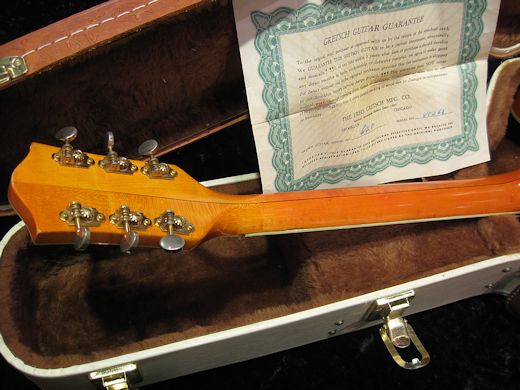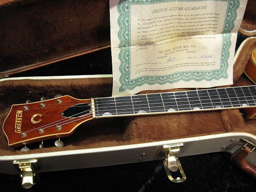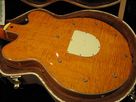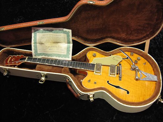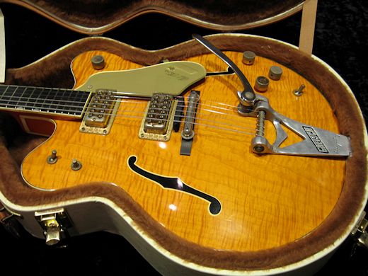 Near MINT !!レアな極上フレイムの6120入荷しました。ダブルカッタウェイ初年度にあたる’62年製でこれほどの美しいメイプルはめったにございません。コンディションも素晴らしくミュージアムクラスの貴重品です。ホワイトハードケース付