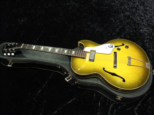 1963年製エピフォンソレントが入荷しました。シンボディにギブソン製ミニハム搭載のフルアコ。ミニハムとフルアコのマッチングは素晴らしく、アタック感がしっかりしてながらも艶っぽいトーンです。ロック、ブルースはもちろんジャズにもお勧めします。現在ペグが交換されていますがオリジナルもございます。オリジナルチップボードケース付き