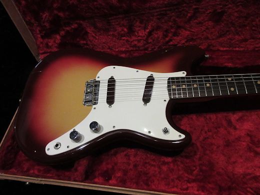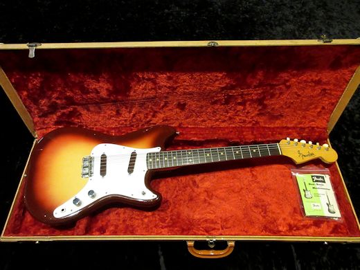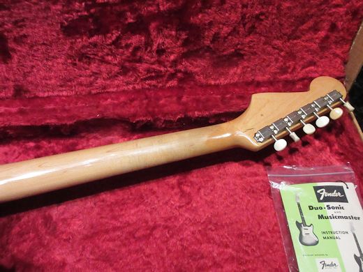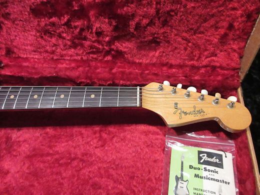 tag付き!極上コンディションの1963年製デュオソニックの入荷です。ショートスケールながら指板には上質なハカランダが採用され、極薄ラッカー塗装などPRE CBSの素晴らしい質感を堪能出来る近年非常に人気の高いモデルです。今回入荷分は2弦ペグのみ交換、その他はフレットまでオリジナルのクリーンな個体です。音圧も十分あり、スチューデントモデルとは思えない本物のヴィンテージサウンドをお楽しみ頂けます。tag、オリジナルハードケースが付属致します。