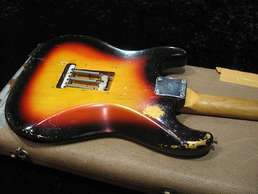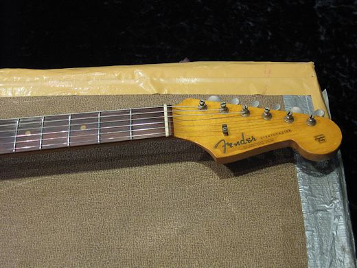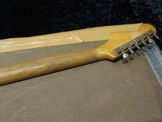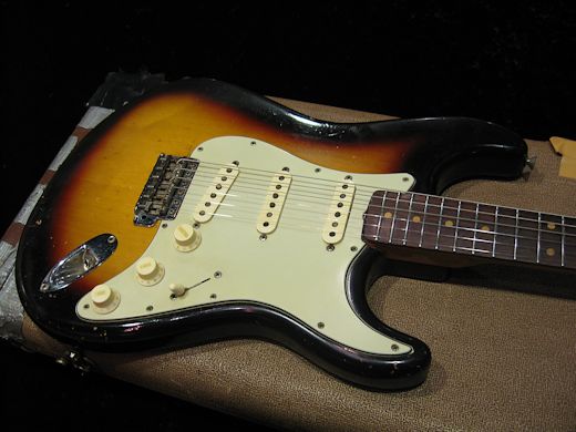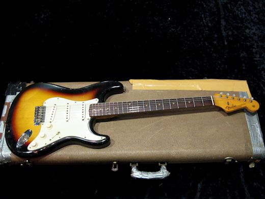 Big Neckの63年製ストラトキャスター入荷しました。ネックデイト、ボディデイトともに62年12月でポットデイトは’63年の2週目。フレット、ナット、5点スイッチ交換以外はオリジナルパーツです。この頃のストラトならではの太いネックグリップにハカランダ指板のラウンドボード。ピックガードは割れ無しのきれいな状態です。オリジナルブラウントーラックスケース付き