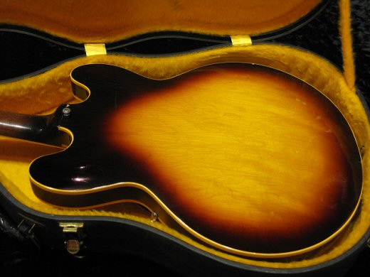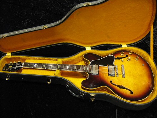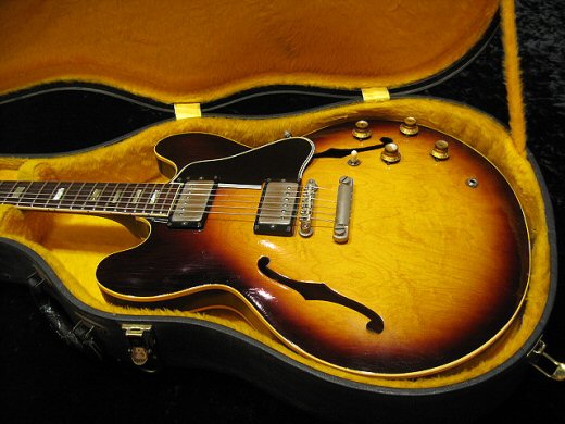 極上コンディションの1963年製ES-335が入荷しました。PAFと同スペックを持つ初期ナンバードPAFのブライトで甘いサウンドが絶品です!!非常に人気の高いストップテールピース仕様、42ミリレギュラーグリップ。ナット、フレットのみ交換でオリジナル度も高いです。オリジナルハードケース付き