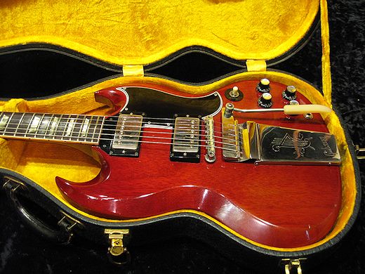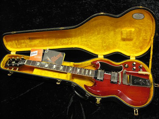 Near MINT !! Collector grade !!1963年製SG Standard入荷しました。人気の高いロングバイブローラー付きの’63年製、これほどの綺麗なコンディションはなかなか見つからないと思います。All Original、Graet sound、No repair、Very clean !!! オリジナルハードケース付