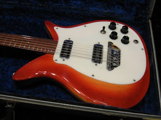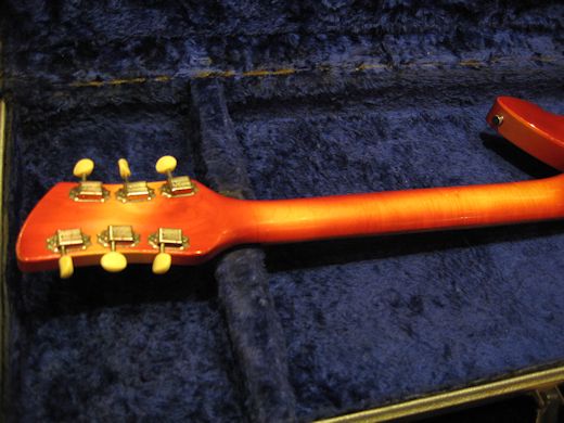 美品!1963年製#950 Fireglo入荷しました。ショートスケールのソリッドモデル。バーズアイメイプルボディにフレイムの出ているネックです。フルオリジナル。オリジナルハードケース付