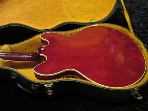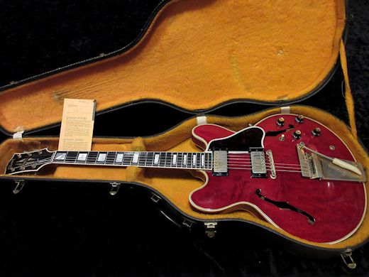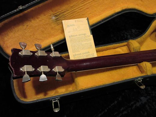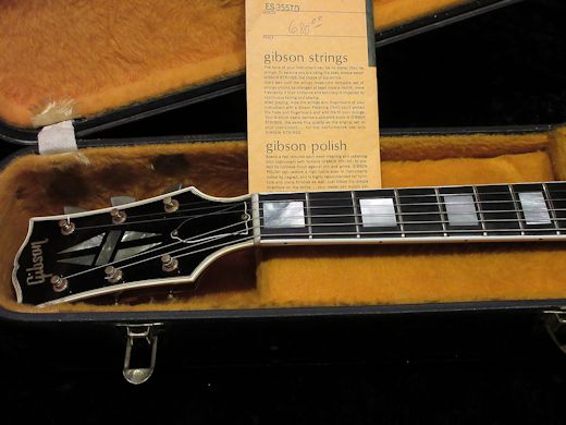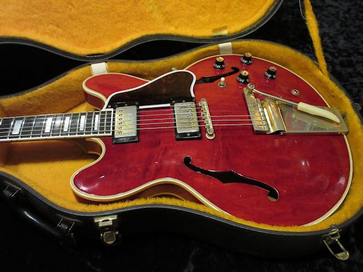 美品・大特価!コレクター放出のオリジナルモノラル仕様、タグ付きのES-355入荷です。ステレオ仕様が多い中、使い勝手のいい貴重なモノラル仕様、初期ナンバード搭載でクリスピーなサウンドは正に王道のGibsonサウンド、抜け/倍音共に抜群です。ビンテージとしての価値/評価が高い17度レギュラーネック期の美品が大特価ですので、お早めにどうぞ!タグとオリジナルハードケースが付属です。