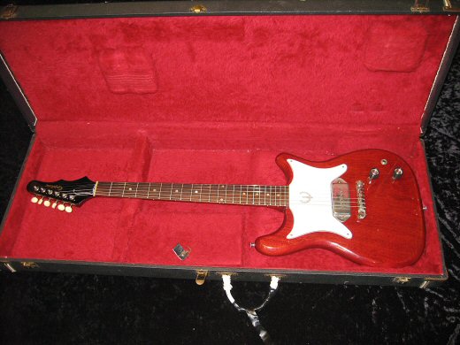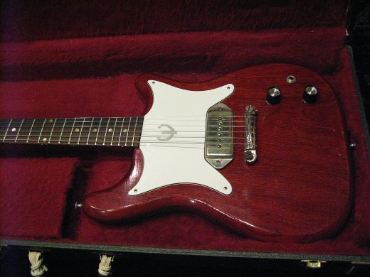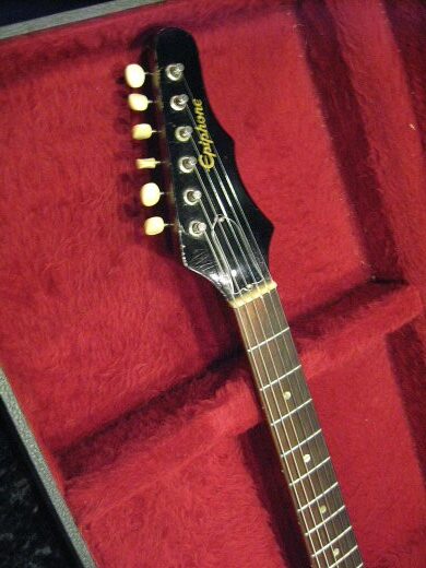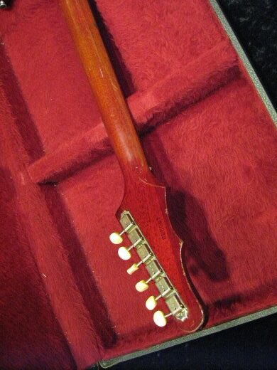 エピフォン、コロネットの入荷です。探すと意外に少ないモデルです。この機会にいかがでしょう。オリジナルバーブリッジ仕様ですが一度ビグスビーを取り付けたビス穴がございます(埋め木してますのでそんなに目立ちません)。ピックガードは現在リプレイス物になっていますがオリジナルも付属(ビス穴部分が欠けています)。その他オリジナルパーツでもちろんハカランダ指板!!ヴィンテージマホガニーの乾いたサウンドです!