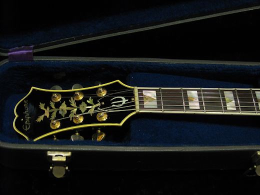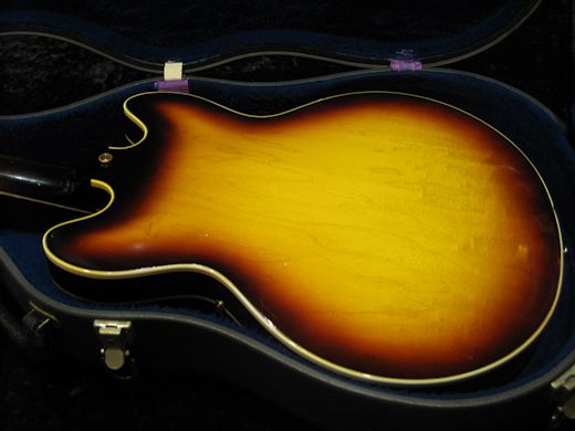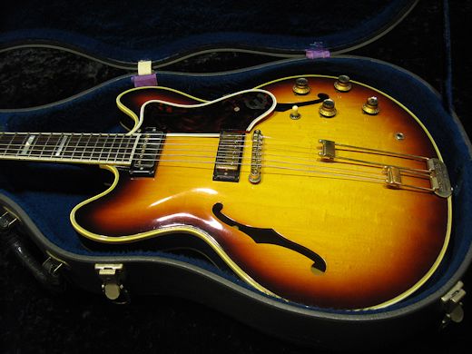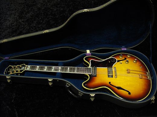 Near Mint ! Superb Example! 1964年製Epiphone Sheratonの入荷です。ただでさえ生産本数が少ないSheraton、それも64年のワイドネック期のウルトラレアピース。Rivieraに比べて圧倒的に生産本数が少ないながら、今回入荷の1本は正に極上のNear Mint品!トレモトーン等に比べ、適度なテンション感が得られるフリークエンセイターテイルピース仕様。気品のあるゴールドパーツに加え、指板も上質なブラジリアンローズ。そして何より特筆すべきはクリアーでリッチなトーン、抜群に抜けの良いサウンドはクランチからヘヴィな歪みまで絶妙なニュアンスのバッキングサウンドを味わえます。本国アメリカでもこのコンディションでこのプライシングはまずあり得ません!UKロックファンは勿論、上質な335をお探しの方にも大プッシュの1本です。オリジナルエピフォングレーハードケース付属。