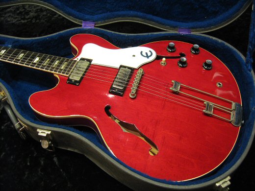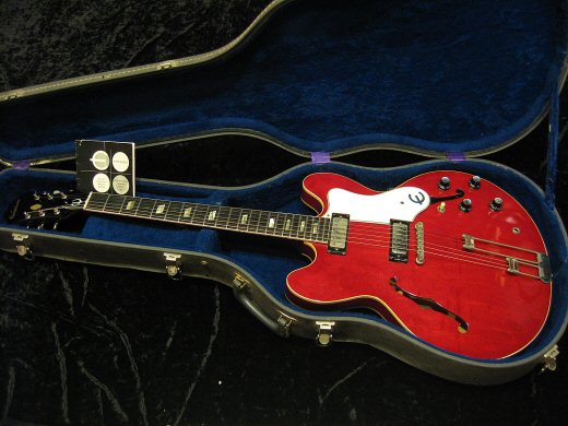 Excellent Condition!!1964年製Epiphone Riviera入荷しました。センターブロック入りシンボディ+ミニハムがグッドマッチング!エアー感がありクリスピーなトーンはエピフォンだけの専売特許です。17度アングル、42ミリレギュラーグリップ、ハカランダ指板の王道スペック!ALL ORIGINAL、コンディションも抜群です。エピフォンオリジナルハードケース付き