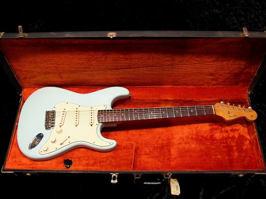 ナイスサウンドの64年製リフィニッシュストラト入荷しました。古いリフでウェザーチェックが出ていて雰囲気抜群の風合い、パーツのオリジナリティは高く、楽器としての状態も良好です。ピックアップはS極トップのブラックボビンで極上のPRE CBSサウンドをご堪能頂けます。その他詳細はお問い合わせ下さい。ブラックトーレックスケース付き